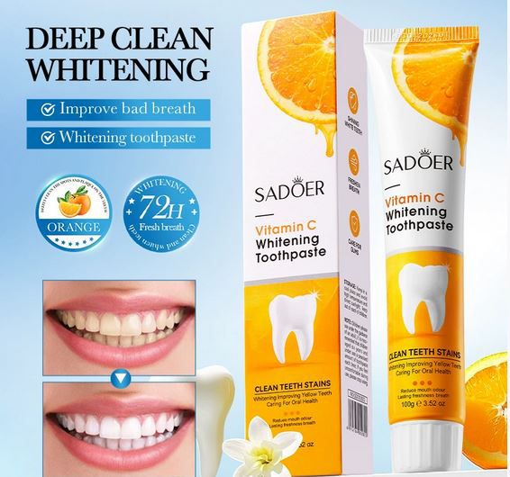 SADOER Vitamin C Whitening Toothpaste Cleans plaque, protects gums, and freshens breath